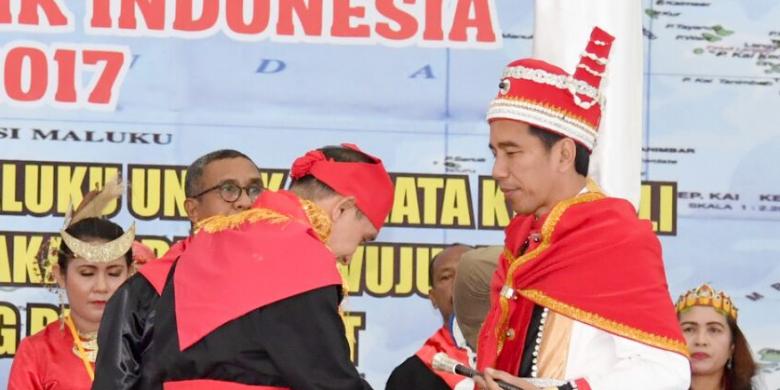 JAKARTA, KOMPAS.com — Presiden Joko Widodo menerima gelar adat kehormatan “Upu Kalatia Kenalean Da Ntul Po Deyo Routnya Hnulho Maluku”.